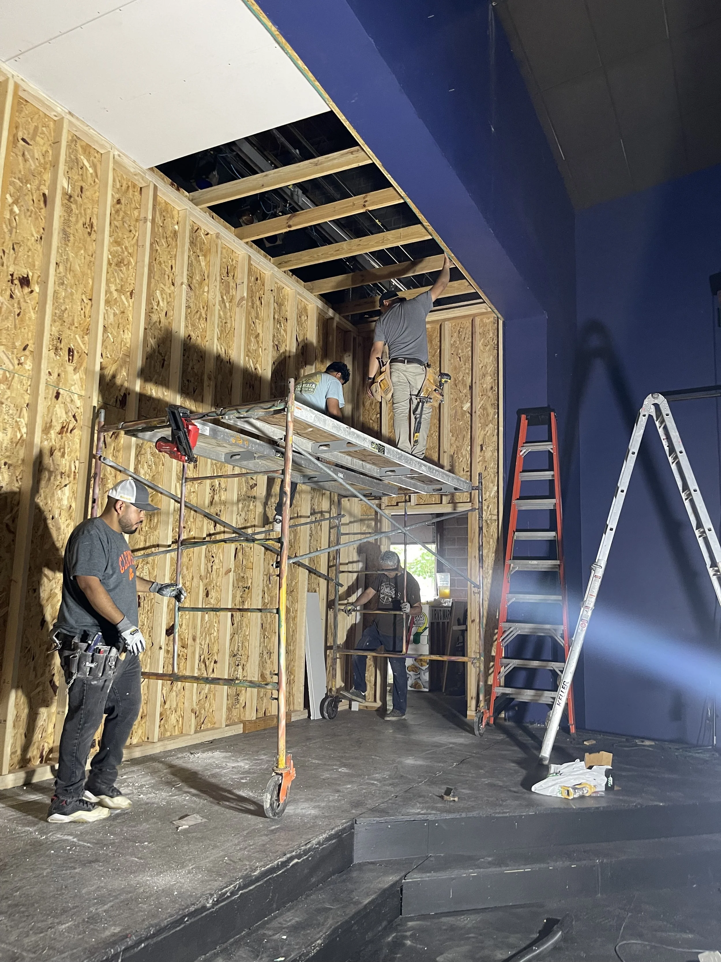 Nuestro equipo está trabajando arduamente para ofrecer la mejor experiencia eclesiástica a nuestra comunidad. Recientemente hemos completado un proyecto de remodelación de nuestro santuario con luces renovadas, una pantalla de televisión y una pared nueva en lugar de la antigua cortina del teatro.